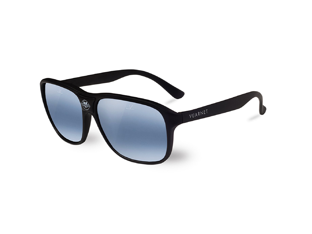 Gli occhiali da sole Vuarnet VL0003 hanno montatura in acetato colore NERO OPACO, l'occhiale monta lenti in vetro, colore GRIGIO specchiato tinta unita Cat. 3.