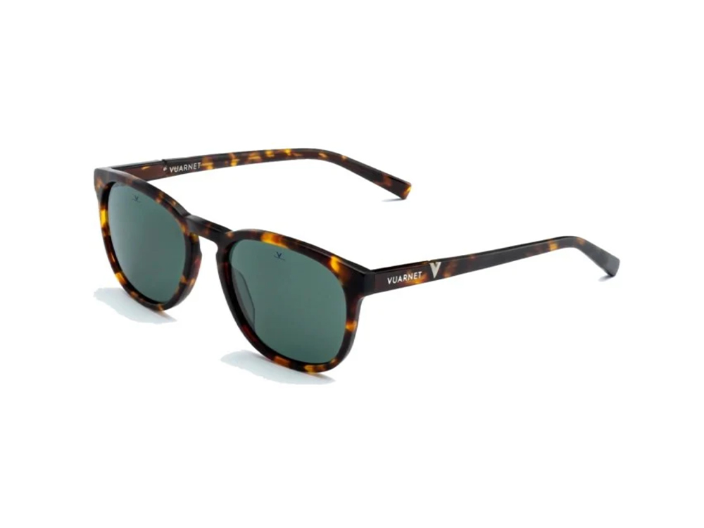 Gli occhiali da sole Vuarnet VL1622 hanno montatura in acetato colore HAVANA, l'occhiale monta lenti in vetro, colore VERDE specchiato tinta unita Cat. 3.